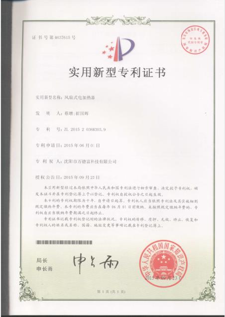 實(shí)用新型:風(fēng)扇式電加熱器專利303.9片
